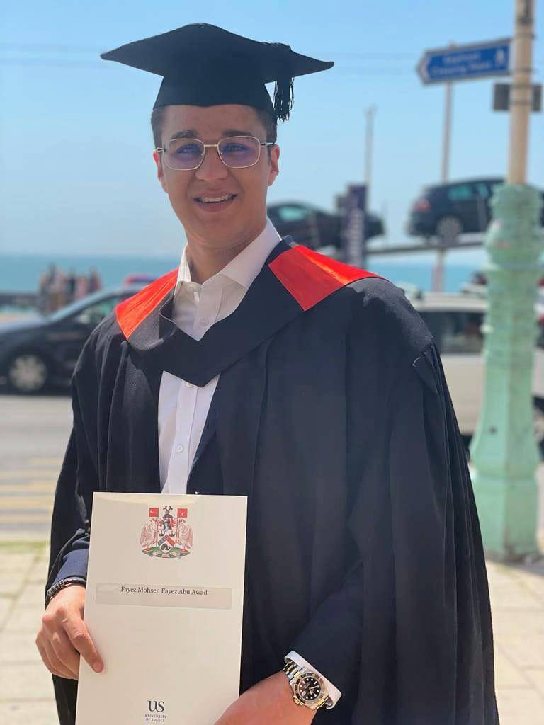 الدكتور محسن ابو عوض مبارك تخرج نجلكم فايز، وعقبال الشهادات العليا..
