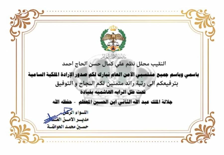 المقدم أحمد نهار المجالي الف الف مبروك الترفيع..