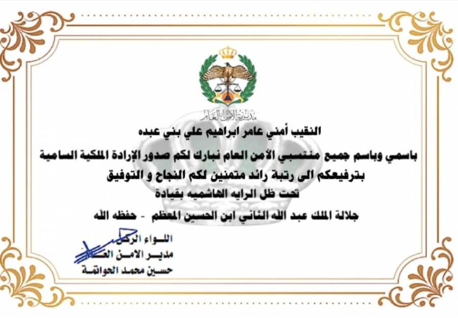 الرائد عامر إبراهيم بني عبده الف الف مبروووك الترفيع..