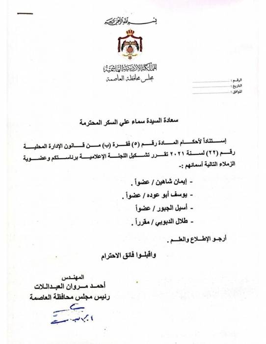 م. نور اللوزي رئيسة للجنة التربية والتعليم بمجلس محافظة العاصمة