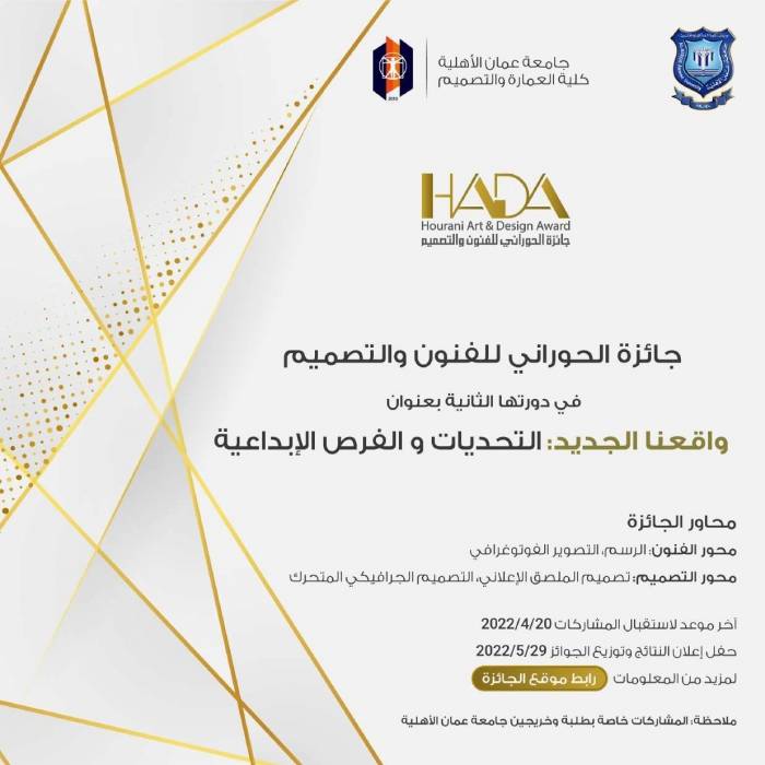 عمان الأهلية تطلق جائزة الحوراني للفنون والتصميم في دورتها الثانية