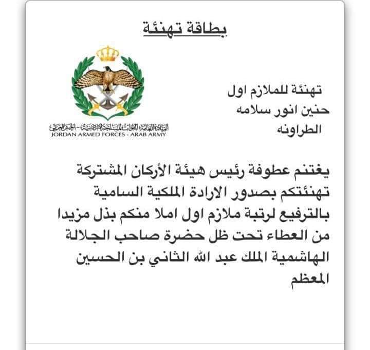 الرائد زياد جعفر الطراونة الف الف مبروووك الترفيع...