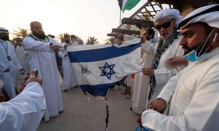 محتجون كويتيون يحرقون العلم الإسرائيلي ويرفضون اتفاقيات التطبيع