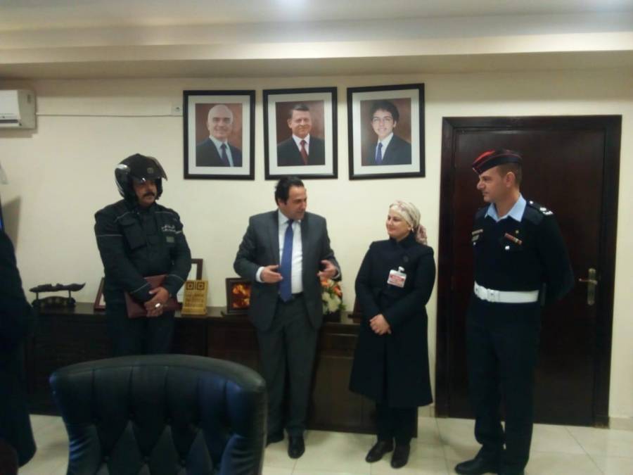 مدير الامن العام يكرم ثلاثة من مرتبات ادارة السير على جهودهم المميزة ومساعدتهم لاحد المواطنين.