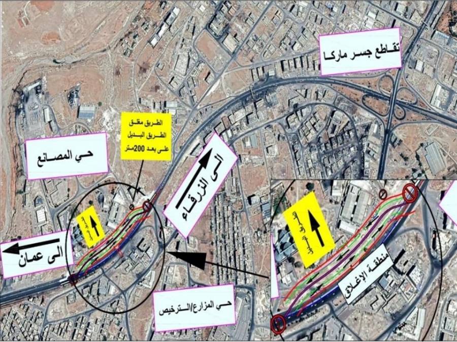 إغلاقات وتحويلات للسير على أوتوستراد عمان الزرقاء