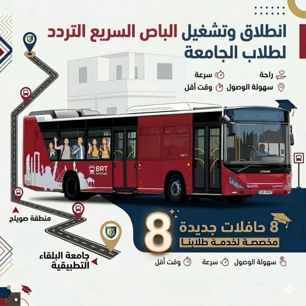تشغيل خط الباص سريع التردد إلى جامعة البلقاء التطبيقية لتعزيز خدمات النقل للطلبة