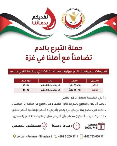 حملة تبرع بالدم في التخصصي دعماً لأهل غزة
