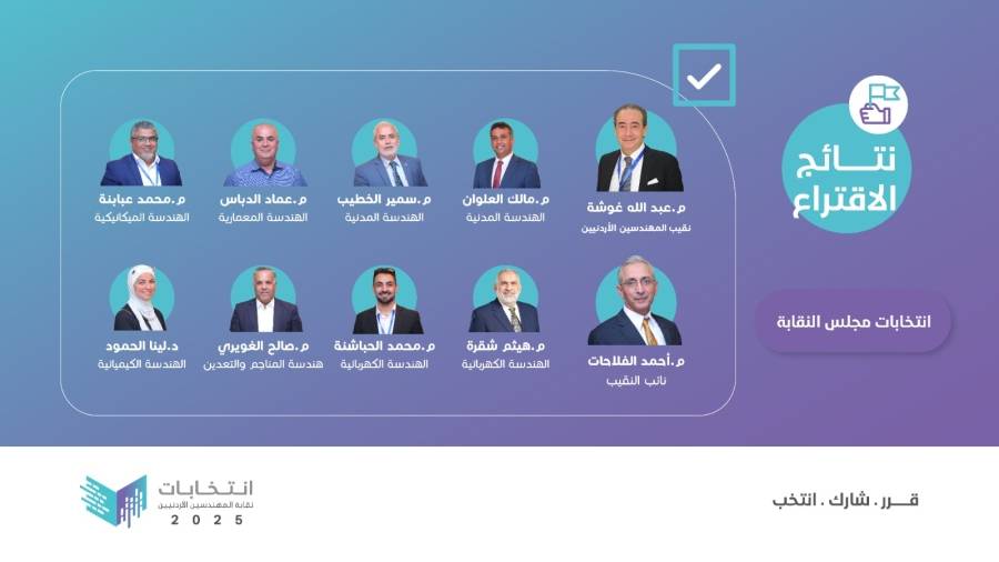 عبد الله غوشة نقيبًا للمهندسين الأردنيين، وأحمد الفلاحات نائبًا له