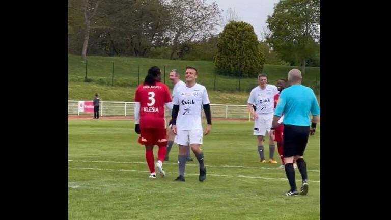 الرئيس الفرنسي ماكرون يسجل هدفا في مباراة بكرة القدم