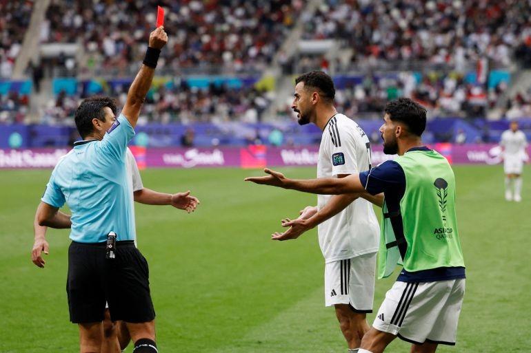سبب طرد اللاعب العراقي أيمن حسين في مباراة الأردن