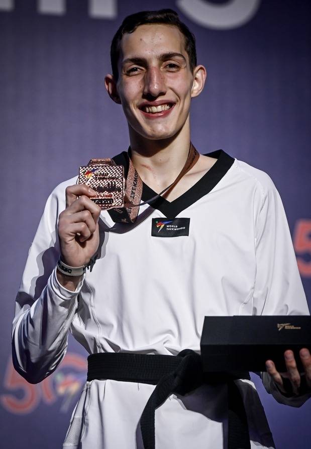 لاعب منتخب جامعة عمان الأهلية للتايكواندو يتوج بالميدالية البرونزية لبطولة العالم