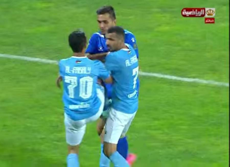 لاعب الفيصلي "الشناينة" يعتدي على لاعب سحاب "ابو سعدة" بعد انتهاء المباراة ويذبح الأخلاق الرياضية على ستاد عمان