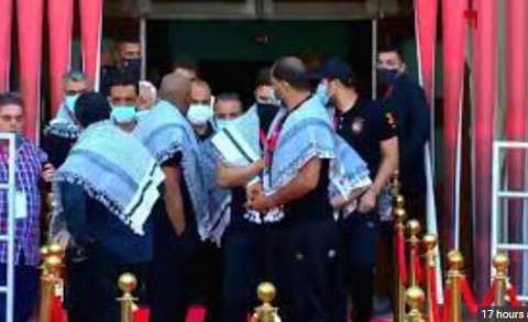 تضامنا مع فلسطين الكوفية الفلسطينية على منصات تتويج الترجي التونسي