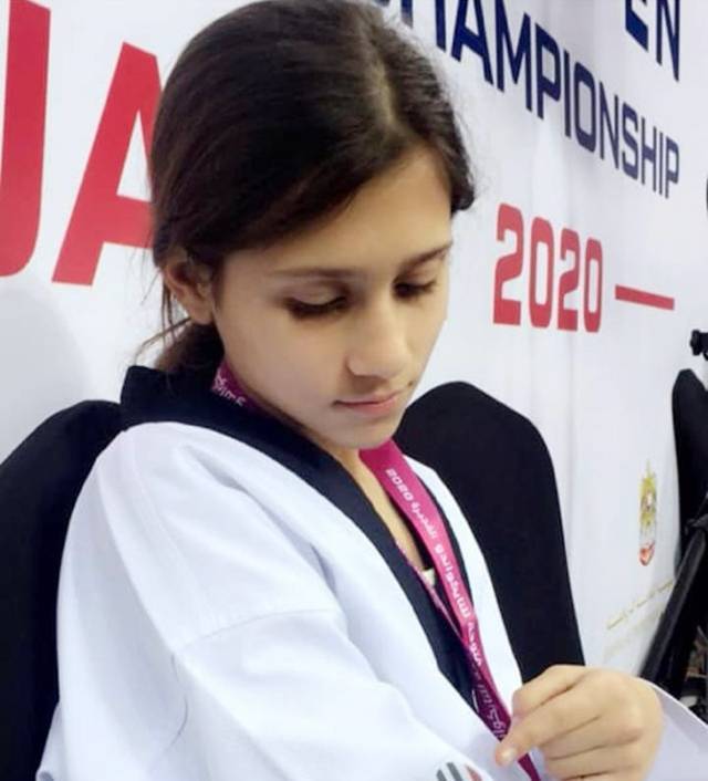 لاعبة التايكوندو الدباس تفوز بالمركز الأول في بطولة العرب للأندية