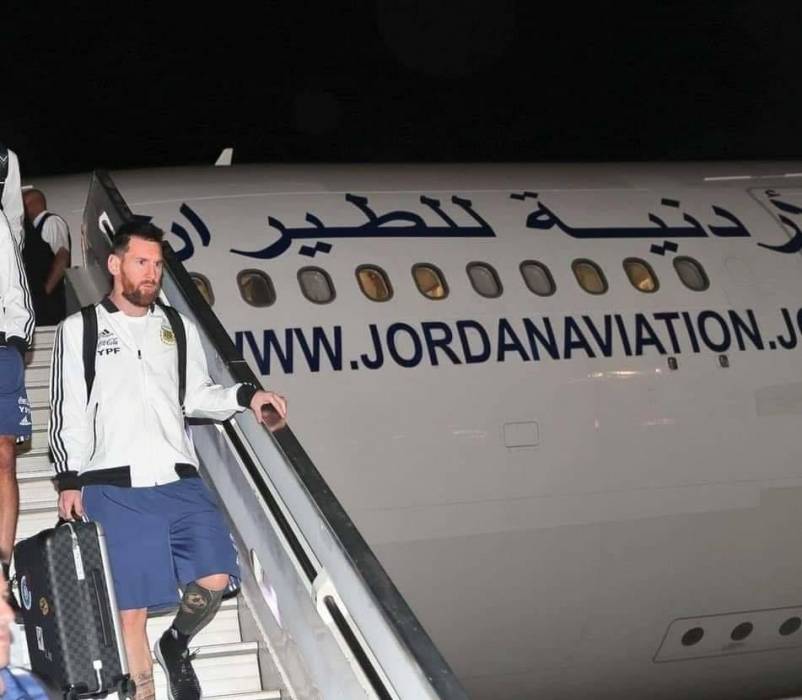 شركة طيران اردنية تنقل " ميسي " لفلسطين -صور
