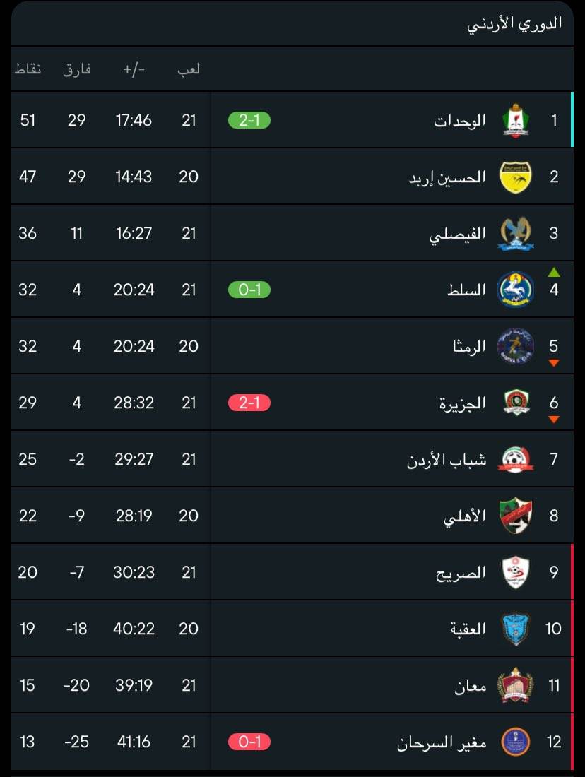 الدوري الأردني: تعادل الرمثا والحسين ينعش آمال الوحدات