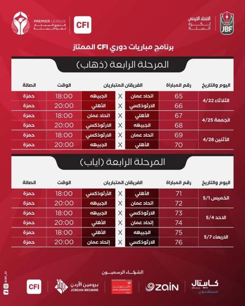 إصدار جدول مباريات المرحلتين الرابعة والخامسة لدوري CFI الممتاز بكرة السلة