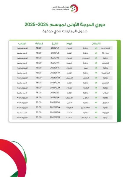 إصدار جدول مباريات نادي دوقرة بدوري الدرجة الأولى