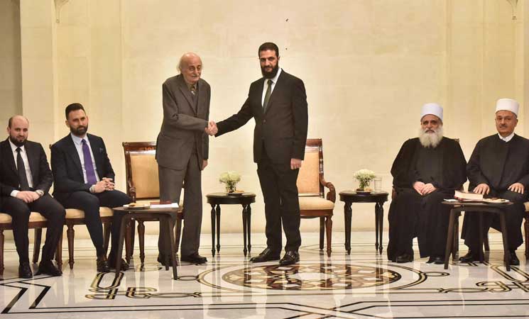 الزعيم الدرزي وليد جنبلاط على رأس وفد في قصر الشعب بعد سقوط الأسد