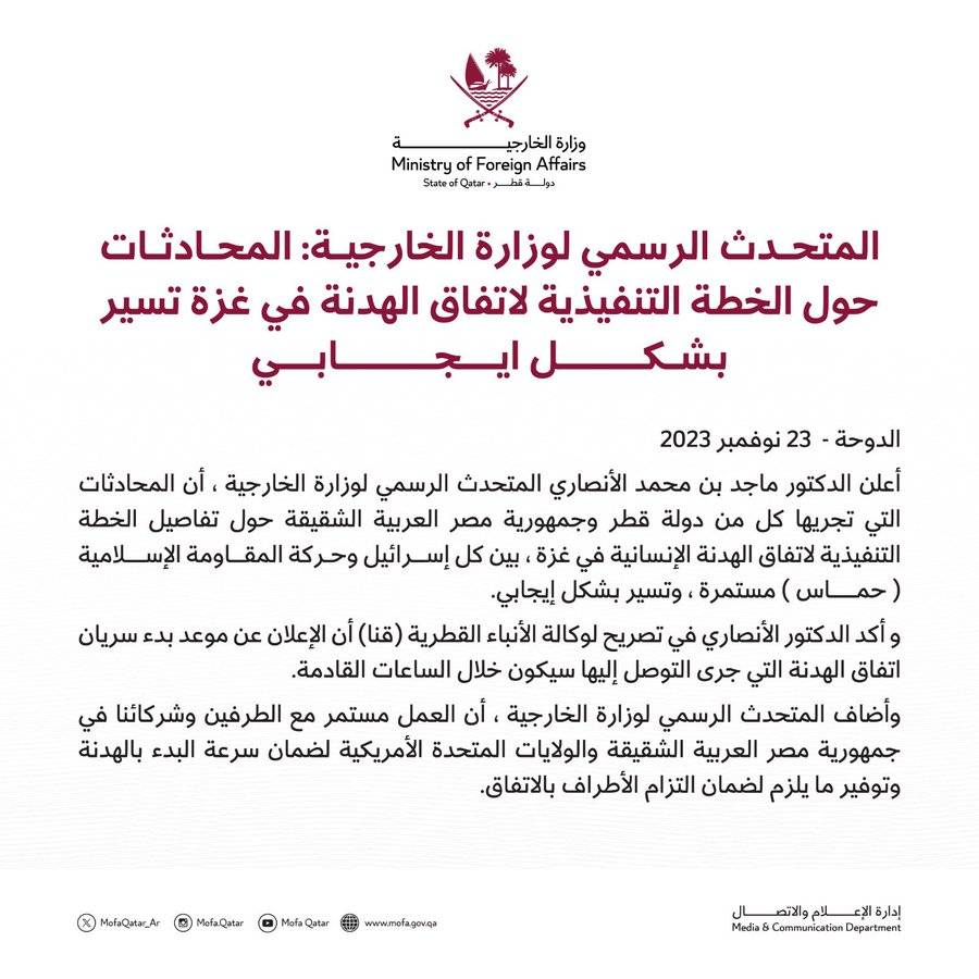 رغم كل الاشاعات عن فشلها .. الأنصاري : بدء سريان اتفاق الهدنة في غزة خلال الساعات القادمة