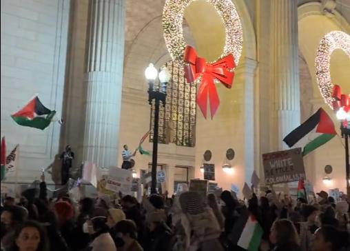 مظاهرة أمام محطة القطارات الرئيسية في واشنطن دعما لغزة