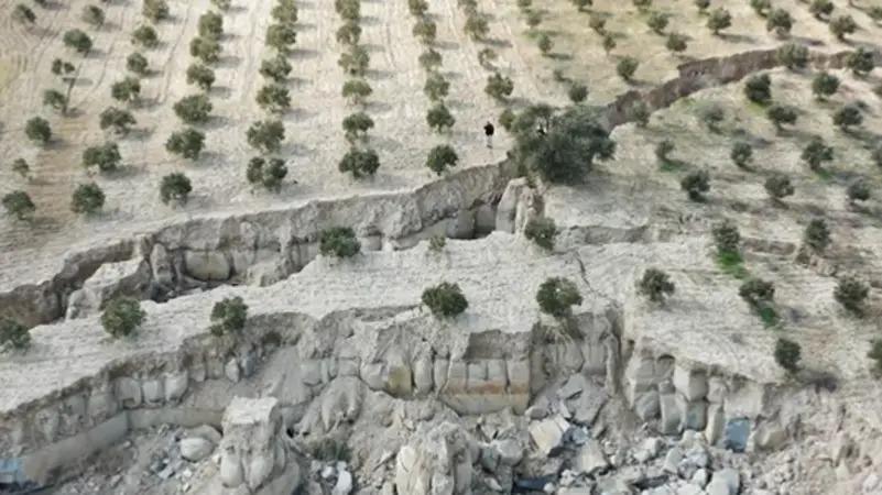 زلزال تركيا يشطر حقل زيتون إلى نصفين