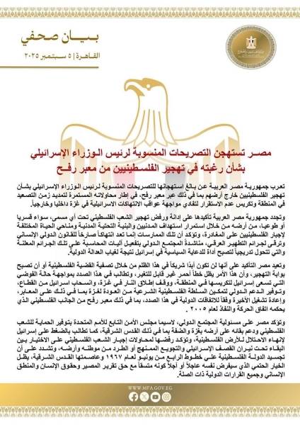مصر : نرفض التهجير الفلسطيني عبر رفح ولن نكون شركاء في الجريمة ..