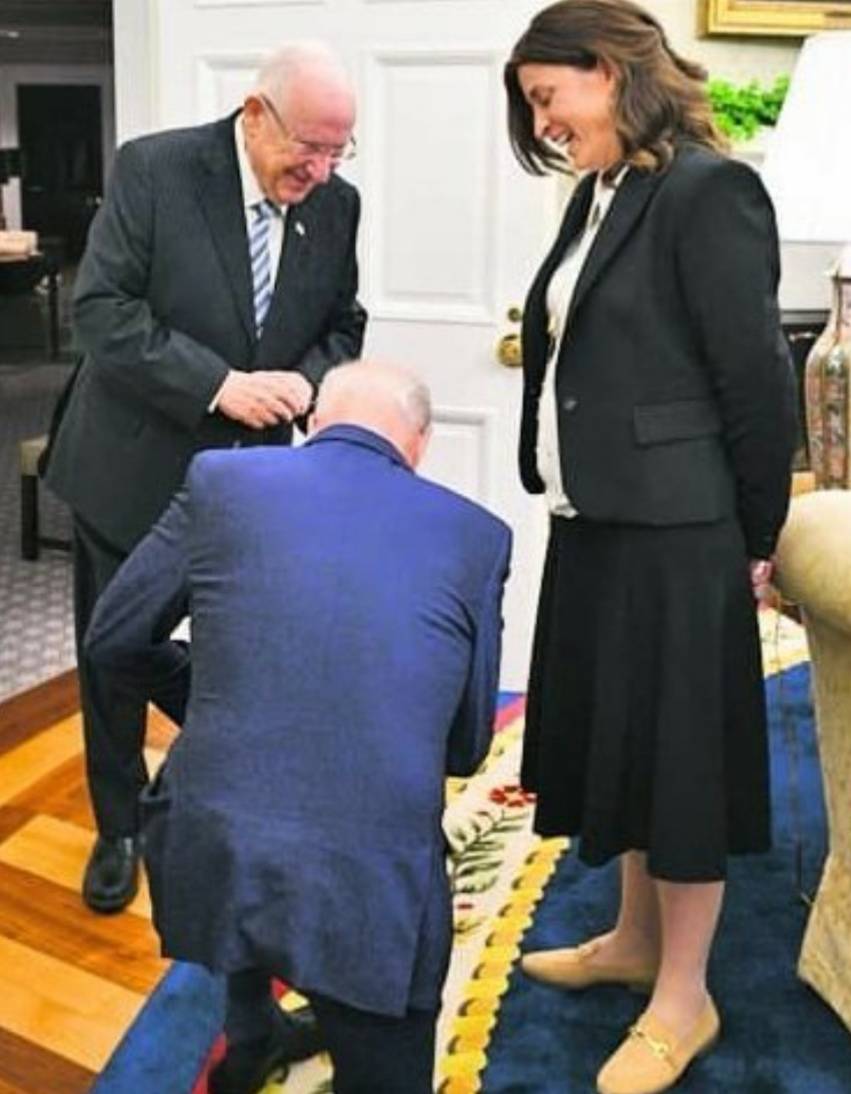 راكعا أمام مسؤولة إسرائيلية.. صورة لبايدن تشعل مواقع التواصل