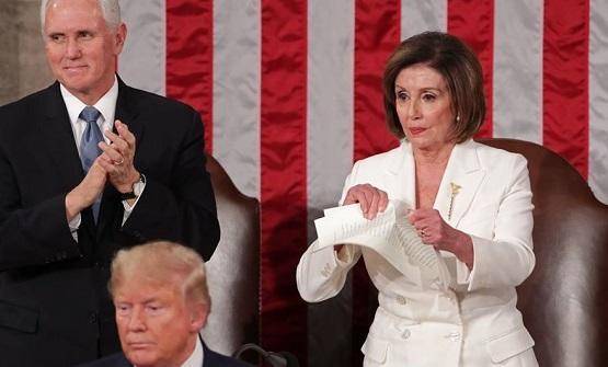 بيلوسي: مزقت خطاب ترامب لأنه مثل بائع زيت ثعابين
