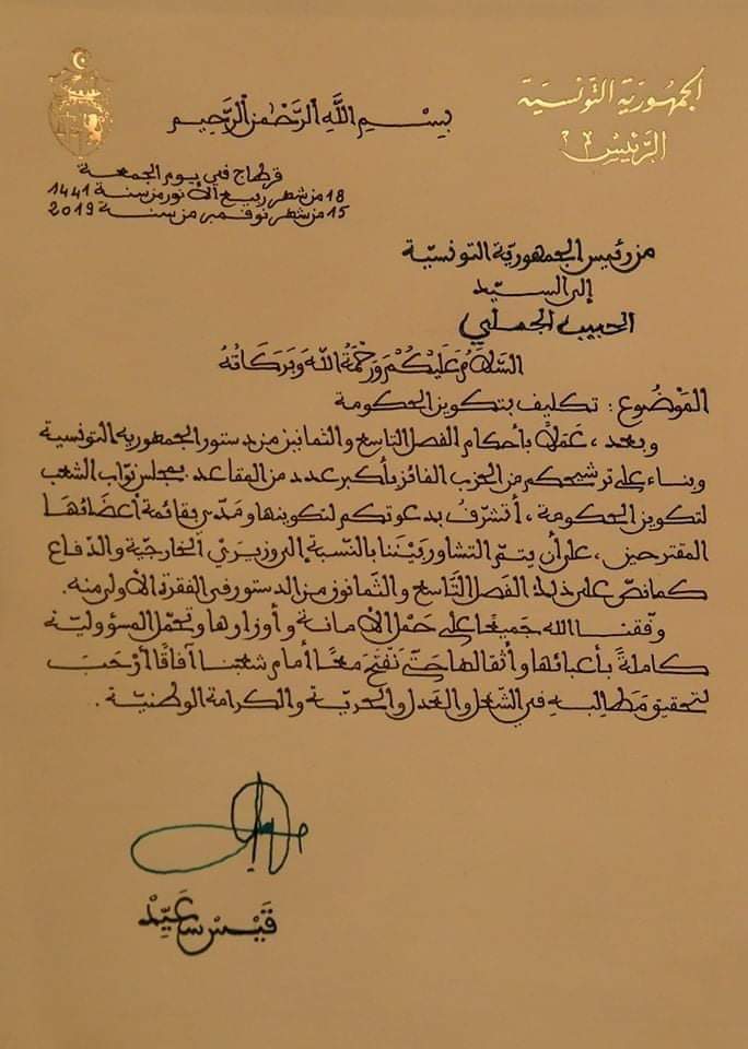 الرئيس التونسي يخط بيده رسالة تكليف الحكومة - وثيقة