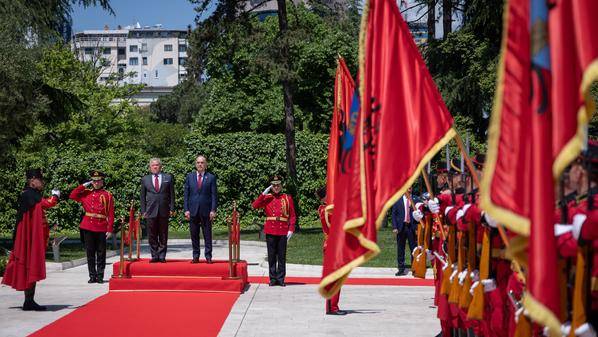 مراسم استقبال رسمية للملك لدى وصوله القصر الرئاسي في ألبانيا