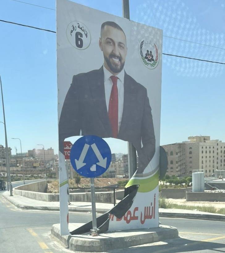 ما زال مسلسل تحطيم الصور واليافطات الانتخابية مستمراً في الزرقاء .. والمرشح انس الدميسي اكبر المتضررين