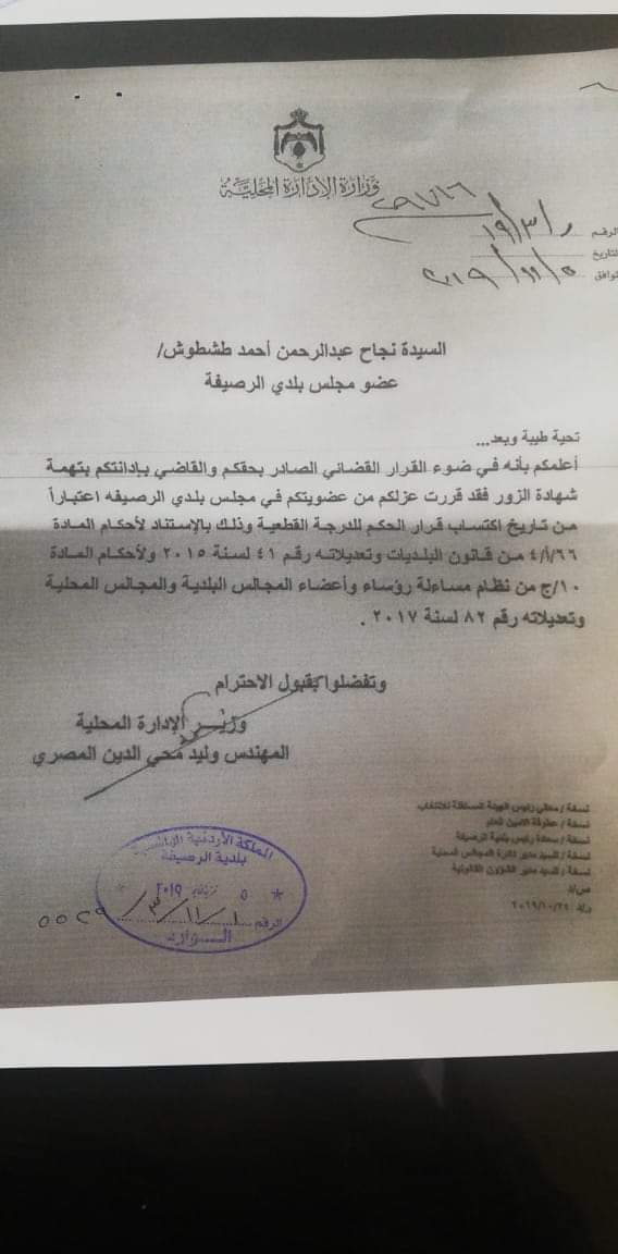 حسب ما انفرد به الشريط الأخباري .. بقرار محكمة "طشطوش" خارج مجلس بلدي الرصيفة..