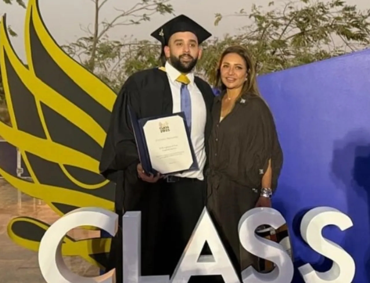 ليلى علوي تحتفل بتخرج ابنها بـ(التبني) من الجامعة