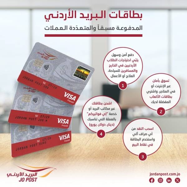 بطاقات البريد الأردني متعددة العملات ... حرية مالية بلا حدود