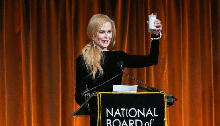 نيكول كيدمان تشرب الحليب على المسرح أثناء تسلمها جائزة فيلم Babygirl
