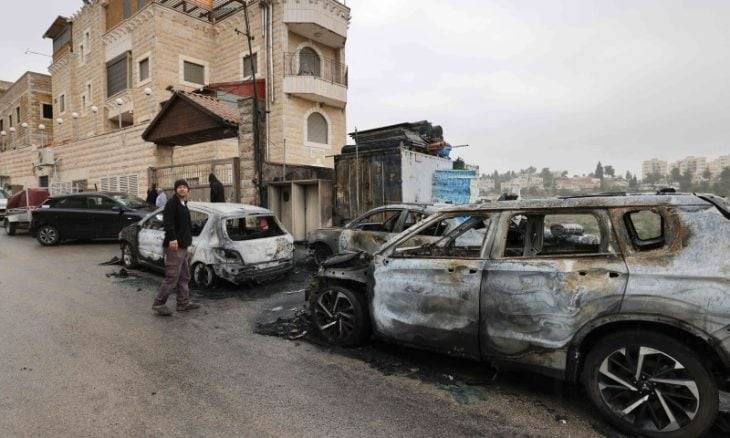 مستوطنون يحرقون 5 مركبات فلسطينية غربي القدس
