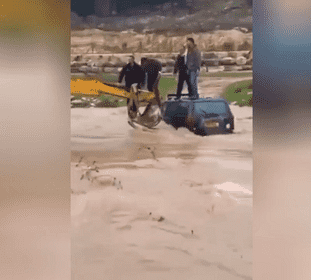 عملية إنقاذ لاشخاص جرفتهم السيول بفلسطين