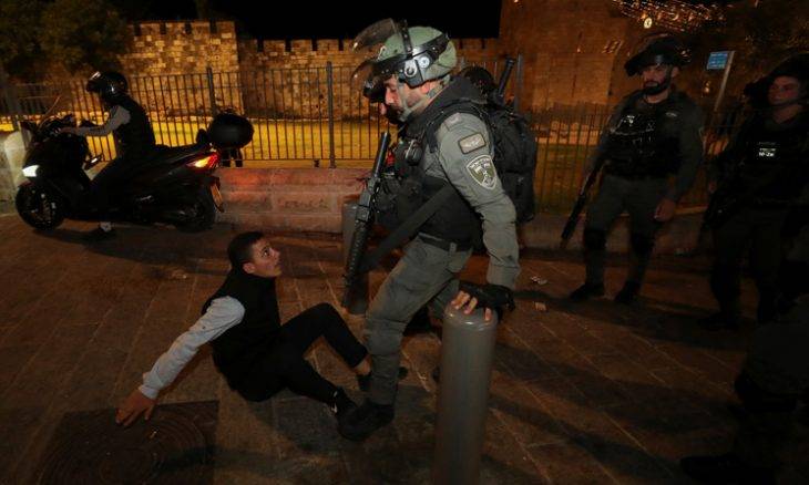 جيش الاحتلال الإسرائيلي يعتدي على الفلسطينيين في “باب العامود”