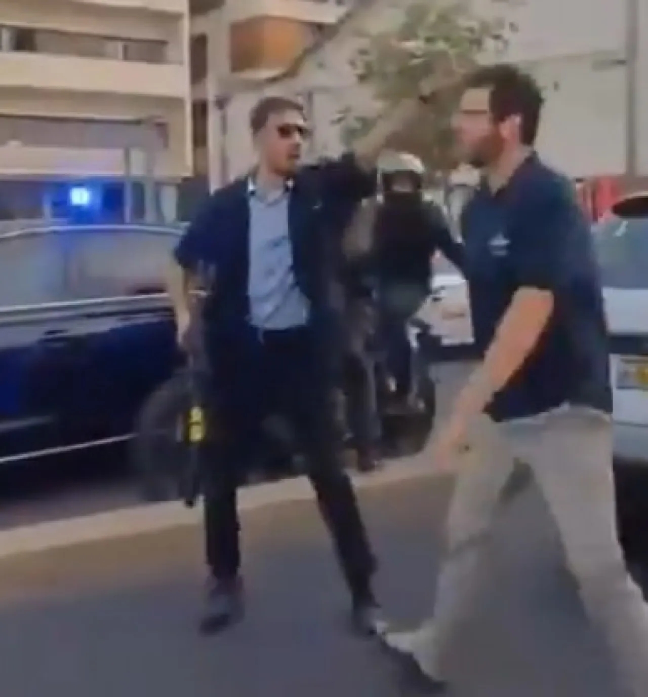 عنصر من الشاباك يشهر سلاحه بوجه متظاهر وصف نتنياهو بـ الخائن في (تل أبيب)