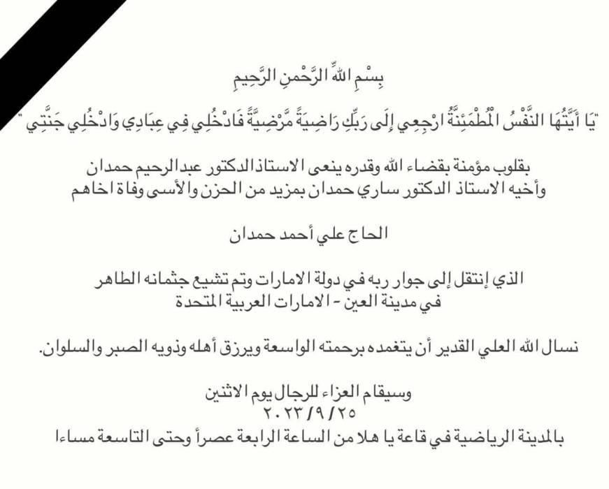 شقيق (أ.د. ساري حمدان) رئيس جامعة عمان الاهلية في ذمة الله ...
