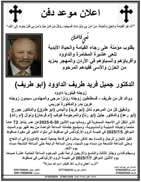 شقيق المؤرخ الدكتور جورج طريف في ذمة الله ..