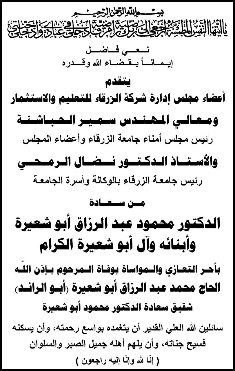 شقيق الدكتور محمود أبو شعيرة في ذمة الله...
